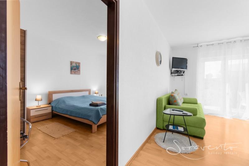Apartman Morena is a charming and peaceful apartment offering the perfect retreat for those seeking a quiet and comfortable stay. With 1 bedroom, 1 bathroom, a living area with a kitchen, and a cozy terrace, this apartment comfortably accommodates up to 4 guests. The living area includes two sofa beds, providing additional sleeping arrangements for 2 guests.