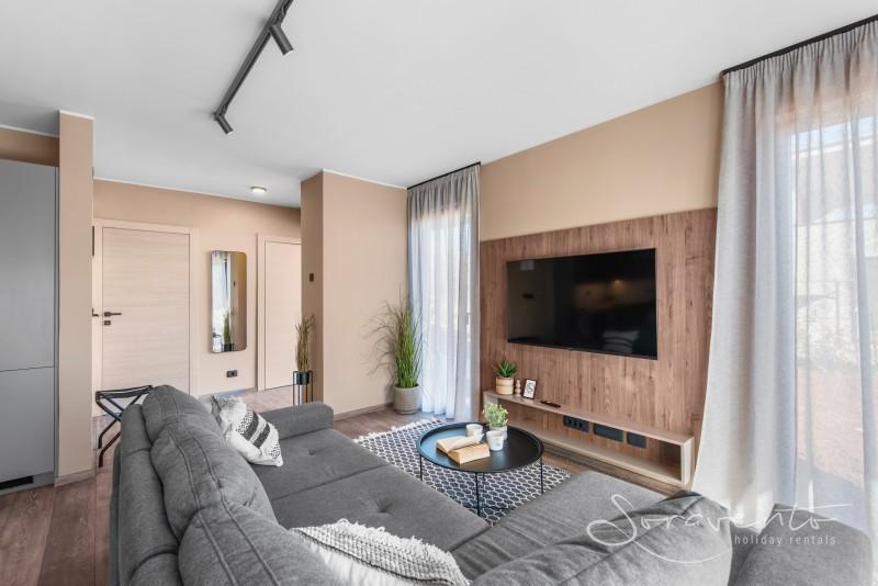 Uživajte u ovom šarmantnom apartmanu koji vam nudi savršen spoj komfora, stila i blizine mora. Iskusite mir i luksuz apartmana na prizemlju s privatnim bazenom, koji vam jamči nezaboravan odmor.