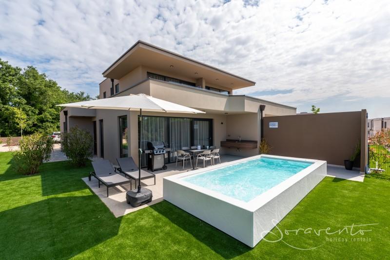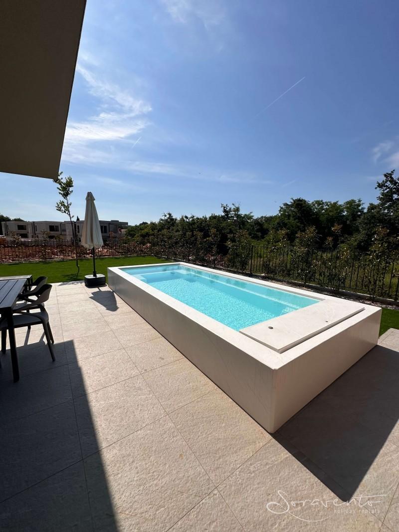 Izađite na pozivnu terasu, gdje vas čeka privatni bazen, savršen za opuštanje na suncu ili za uživanje u obrocima na otvorenom. Apartman pruža smještaj za do 5 gostiju, što ga čini idealnim za male obitelji ili prijatelje.