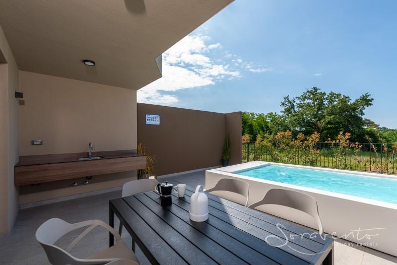 Privatna terasa – s bazenom i mjesto za jelo na otvorenom